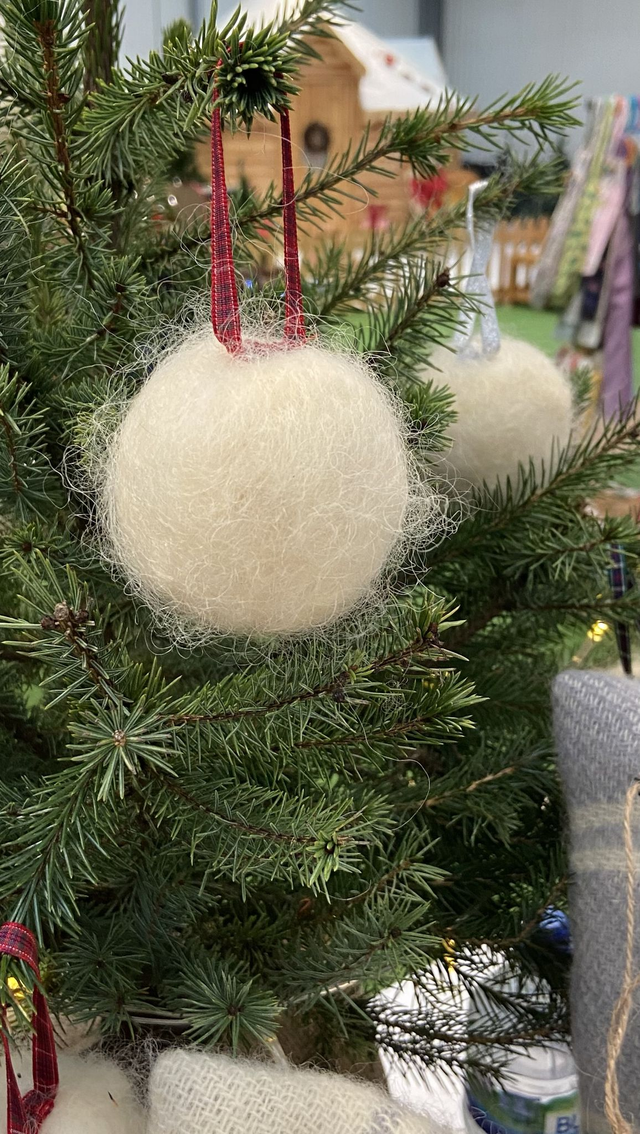 Handmade with wool from our flock of Pedigree Cotswold Sheep. Ribbon can be changed on request.